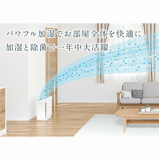 ・・・・・商品特徴・・・・・ 加湿と除菌で 一年中大活躍 ◎ポイント ・充実の加湿機能(パワフルに600mL/h)。